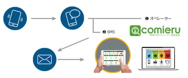スマートフォンから各施設に問合せをするとユーザーのスマートフォンにショートメッセージで『comieru』に接続するURLを送信しユーザーがURLをタップしダイレクトに『comieru』のカメラで収集した温泉施設・遊戯施設の混雑状況を確認することができます。