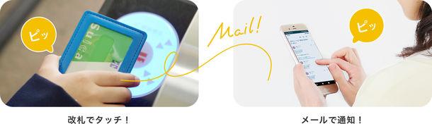 本サービスでは、見守り対象者が「Suica」「PASMO」にて対象駅の自動改札を通過すると、ご登録いただいたご契約者のスマートフォンなどの電子メールに「利用駅」「通過時刻」「チャージ残額」が通知されます。居場所の確認だけでなく、チャージ残額やお迎え時間の確認など便利にお使いいただけます。電子メールへの配信のほか、「JR東日本アプリ」のプッシュ通知機能での配信もご利用いただけます。
