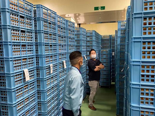 専用の冷凍庫で山積みとなった紅イモのペースト