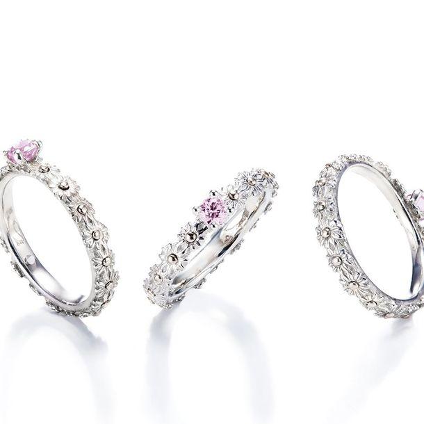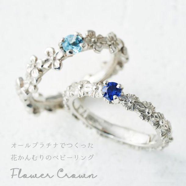 花が一周囲むベビーリングは他にはないデザイン。細やかな職人技だからこそできるデザインとつくりです。