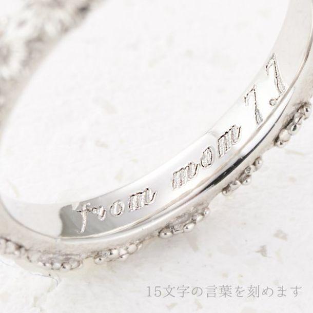 15文字の言葉を指輪の内側に刻印可能。親から子へのメッセージを残せます。