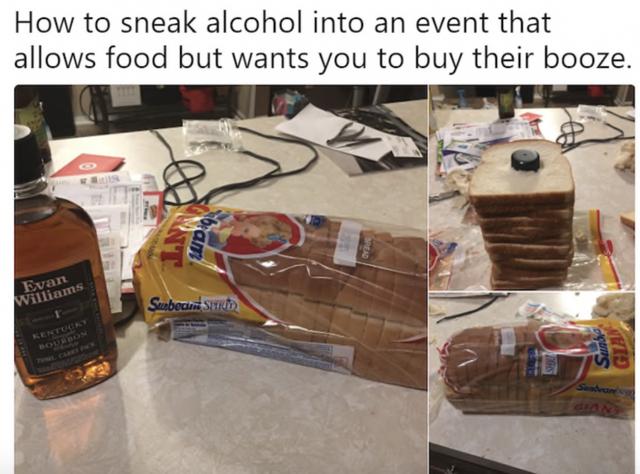 Porque nada é menos suspeito do que vagar no concerto carregando um pedaço cheio de pão!
