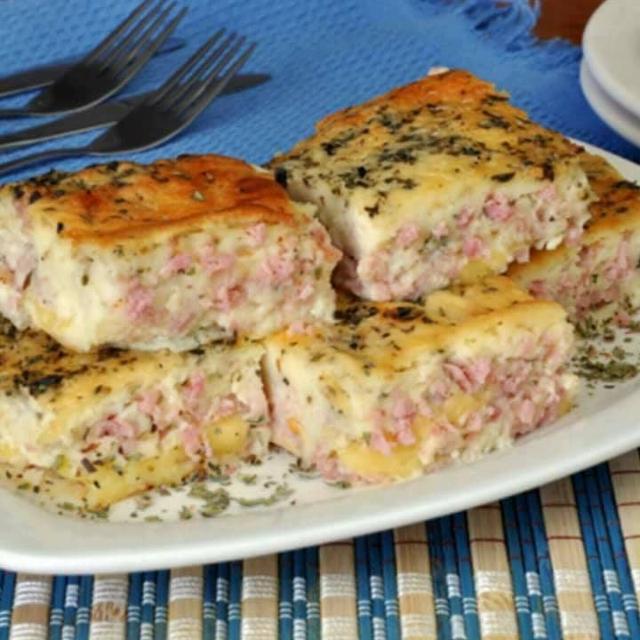 Bata no liquidificador os ovos, o leite, o óleo, a batata cozida, a farinha de trigo e o sal até homogeneizar