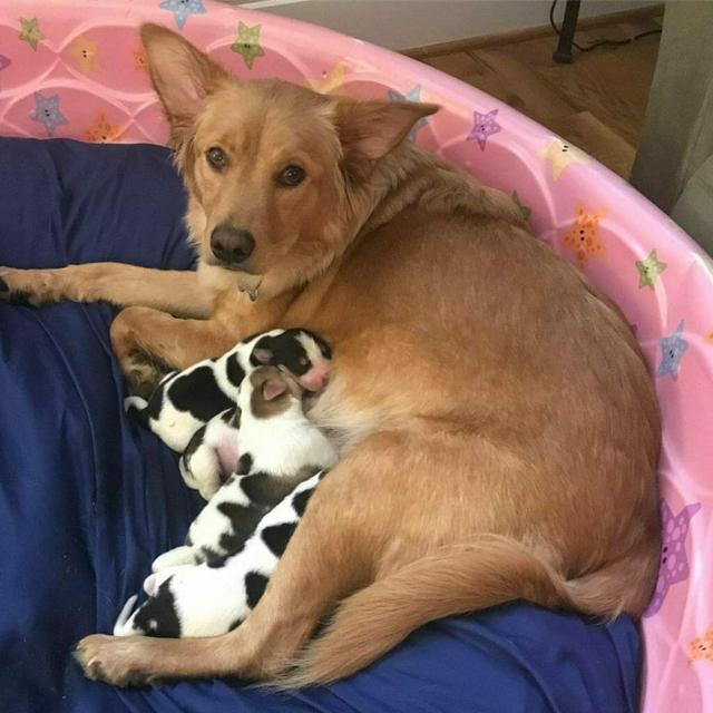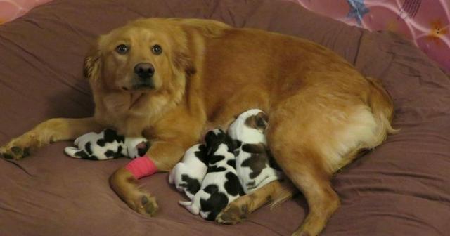 “Não é bem o que esperávamos. Nossa mistura de golden retriever deu à luz ontem. E nasceram vaquinhas”, escreveu Katie no Reddit.