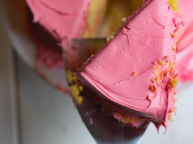 Back to our dilemma: If you don't have an offset spatula, the similar shape and wide surface area of a scraper does a beautiful job smoothing icing over the top and sides of your cake. The thin metal and flat edge of the scraper also functions just as well as a knife to cut through the layers of the cake and deliver a delicious slice.