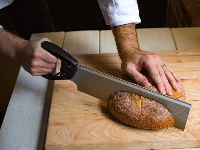 Facing off against frozen bread? When slicing through a particularly hard, crusty loaf, a saw can be sturdier than a knife. But make sure to protect your cutting board or counter because, well, it's a saw.