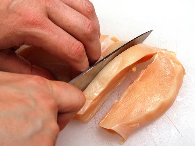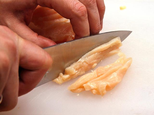 If a recipe calls for dicing, start by slicing the chicken into wider strips.