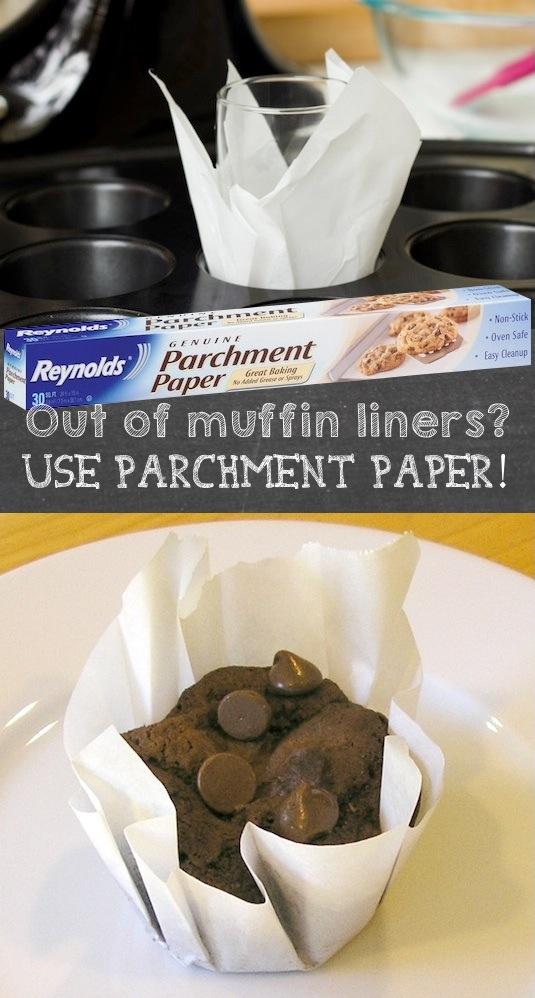 Well, shiver me timbers! People are smart. The next time you find yourself out of muffin liners with a full box of cinnamon streusel muffin mix to make, just use parchment paper. I need to invest in some of this stuff.