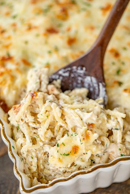 Million Dollar Chicken Alfredo - seriously delicious! Can make ahead and refrigerate or freeze for later. Serve with a simple salad and garlic bread. Great for dinner parties and potlucks! Everyone loves this easy casserole! I never have any leftovers!!