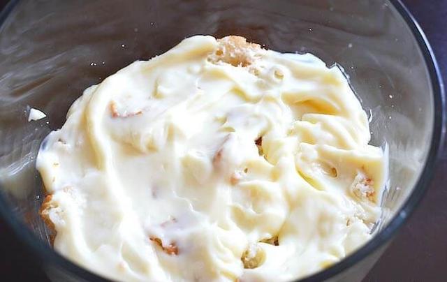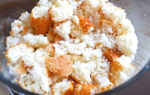 - Break pound cake into bite size piece. Set aside.