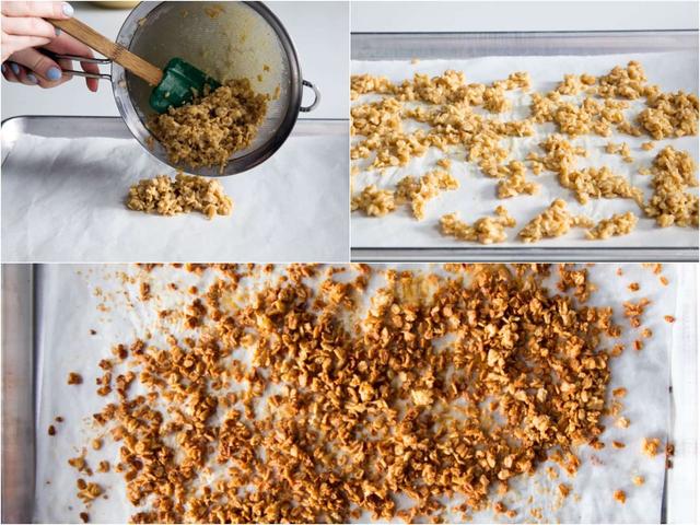 - Baking the dairy-soaked oats creates chewy-crisp oat clusters to mix into the ice cream.