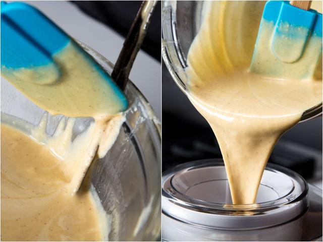 3. Pour through a fine-mesh sieve into a large stainless steel bowl, pressing gently with a flexible spatula to release the liquid trapped in the oats. Add reserved vanilla bean and cinnamon stick (if using) to ice cream base, along with vanilla extract, then cover and refrigerate to continue infusing overnight, or until no warmer than 40°F (4°C).