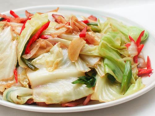 The bacon adds a smoky, porky flavor that I really enjoy: Plus, it provides all the fat this dish requires for stir-frying.