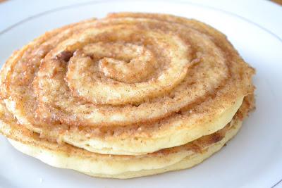 Heat a large skillet or griddle over medium-low heat. Spray with non-stick cooking spray. Scoop about 1/2 cup of pancake batter onto the skillet. Snip the corner of your cinnamon filling baggie and squeeze a spiral of the filling onto the top of the pancake. When bubbles begin to appear on the surface, flip carefully with a spatula and cook until lightly browned on the underside, 1 to 2 minutes more. Transfer pancake to a baking sheet and keep warm in the oven while you make the rest of the pancakes.