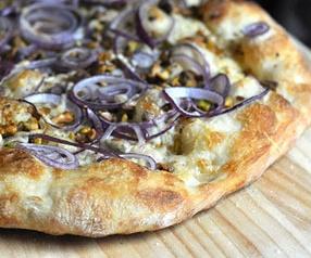 - Hearty vegetables: Aim for a maximum of 6 ounces per pie, spread out in a single layer. Vegetables such as onions, peppers, and mushrooms should be thinly sliced and lightly sautéed (or microwaved for a minute or two along with a little olive oil) before using.