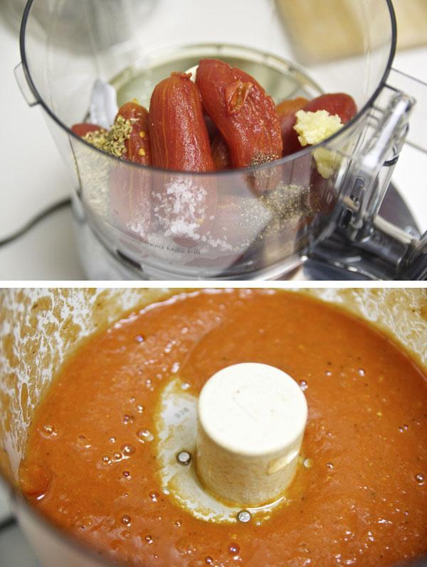 - 1 (28-ounce) can whole peeled tomatoes, drained and liquid discarded