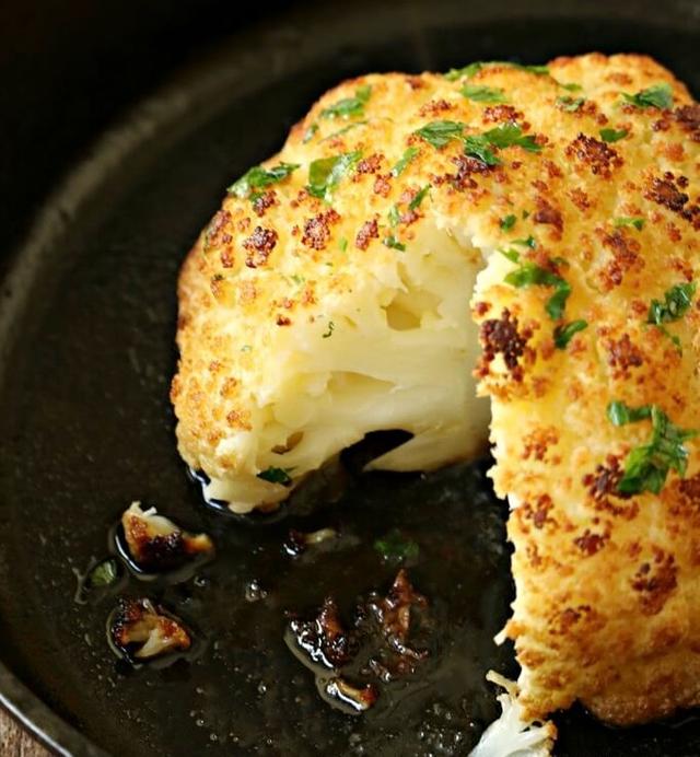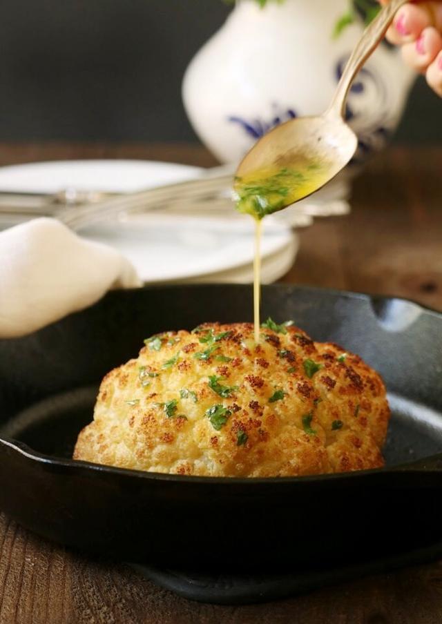 Melt 3 Tbsp of butter (clarified butter if doing whole30 or you can use melted ghee!) and mix in the parsley, then drizzle or brush it on the cauliflower while it’s still hot.