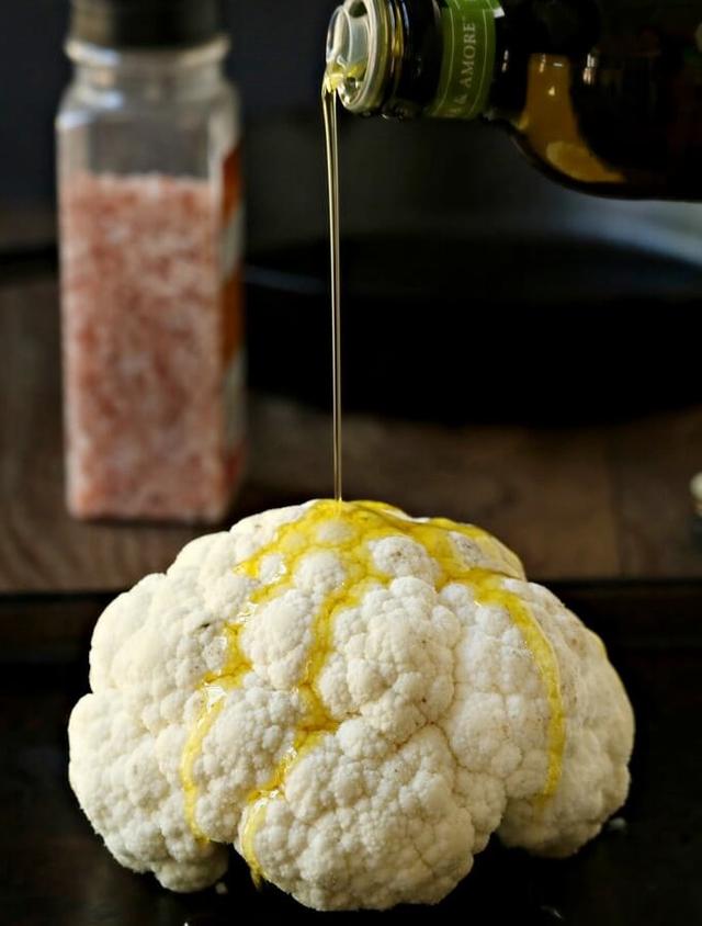 Generously drizzle your oil on top. It’s the key to a perfectly roasted cauliflower head.