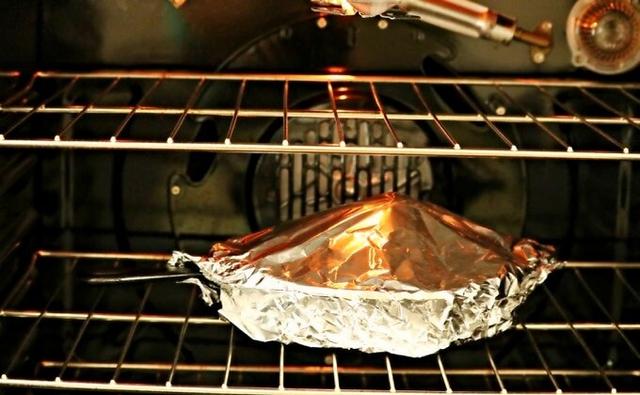 Put it in a oven safe pan and cover it with foil, without leaving any gaps. Our favorite way to cook things is with cast iron skillets, but if you don’t have one, anything that you use in the oven will work. (Note that using cast iron is a great non-toxic choice and also introduces trace amounts of iron into your child’s diet which is perfect!
