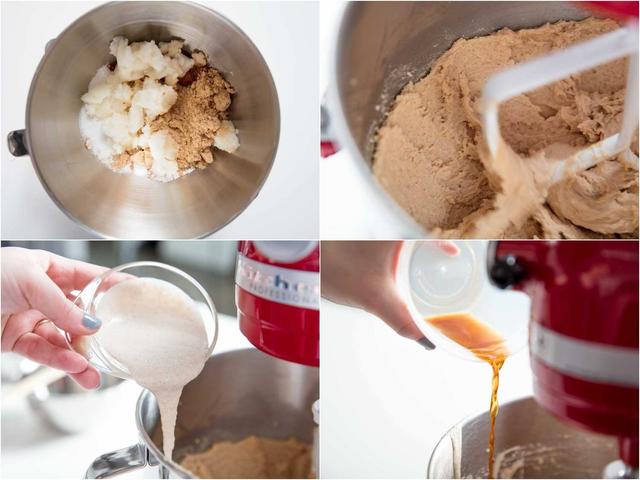 2. For the Dough: Adjust oven rack to middle position and preheat to 350°F (180°C). Combine refined coconut oil, brown sugar, white sugar, vanilla, salt, baking soda, baking powder, and nutmeg in the bowl of a stand mixer fitted with a paddle attachment. Mix on low to moisten, then increase to medium and beat until light and fluffy, about 5 minutes, pausing to scrape the bowl and beater as needed along the way.
