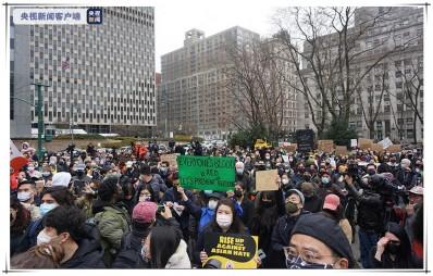 中国メディアの澎湃新聞によると、米ニューヨーク市内で27日、アジア系住人敵視による犯罪に対する抗議デモが行われた。