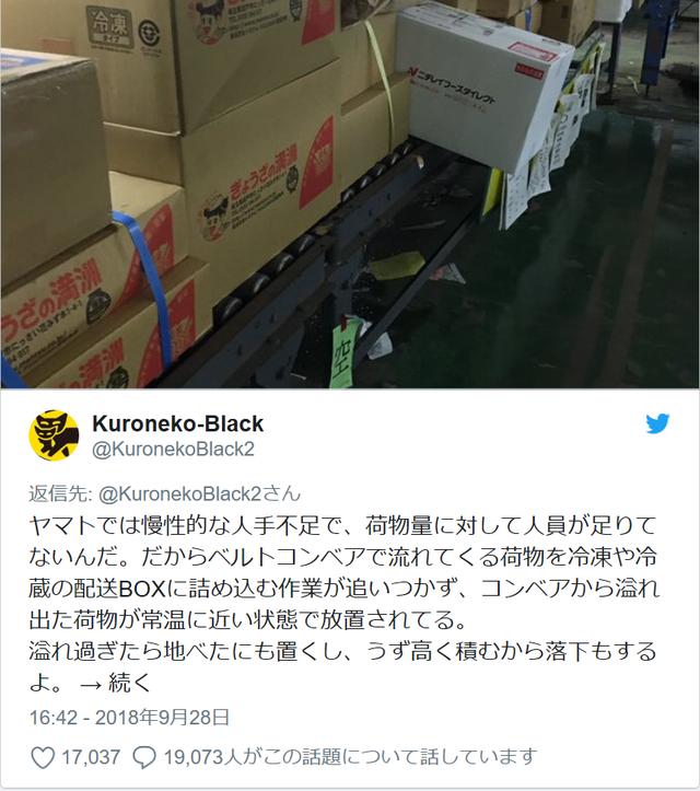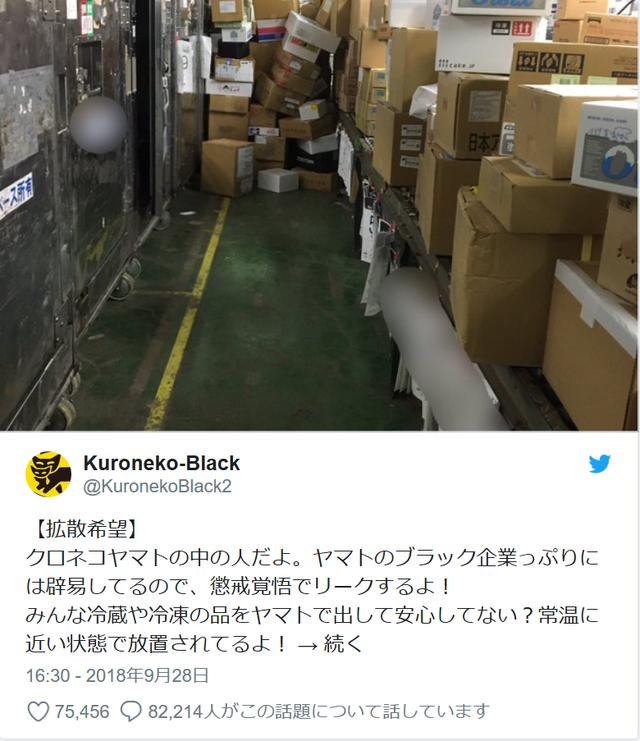2018年9月28日、Kuroneko-Black2というIDでクロネコヤマトの中の人を名乗る人からリークTweetが発信された。内容は「慢性的な人手不足でクール宅急便が常温に近い状態で保存されている」ということ。RT10万件に届く勢いで今も拡散中である。