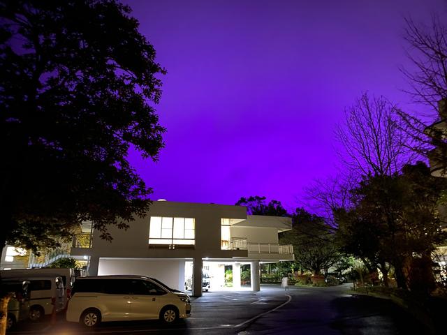 (投稿者)ミニトマト農場のLEDによって紫色に染まった日本の空。