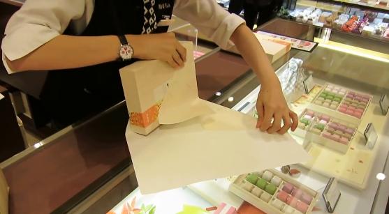 日本の色んなところでこうやってラッピングしてくれるよ。日本の文化は、尊敬の念に基づいてる。ほとんどのお店やレストランで、こういう質の高い接客が行われてるんだ。レストランでチップを渡すことすら失礼とされてるんだよ。