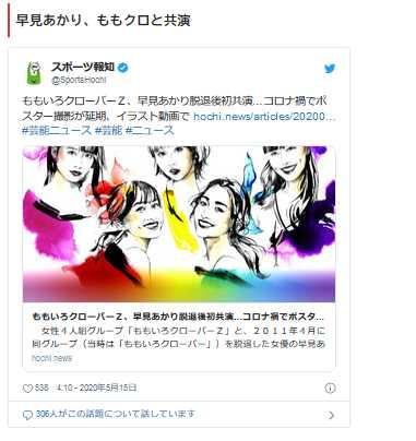 新型コロナウィルスの影響でももクロと早見あかりさんの再会も延期されましたが、イラストによるイメージ映像で9年ぶりに共演したとスポーツ報知が報じました。