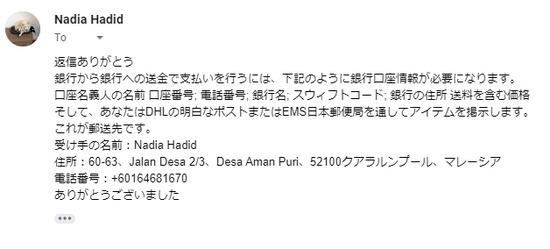 これが詐欺で無ければ口座番号を教え先に振り込まれるはずだ。このマレーシア詐欺というのは銀行に振り込んだ