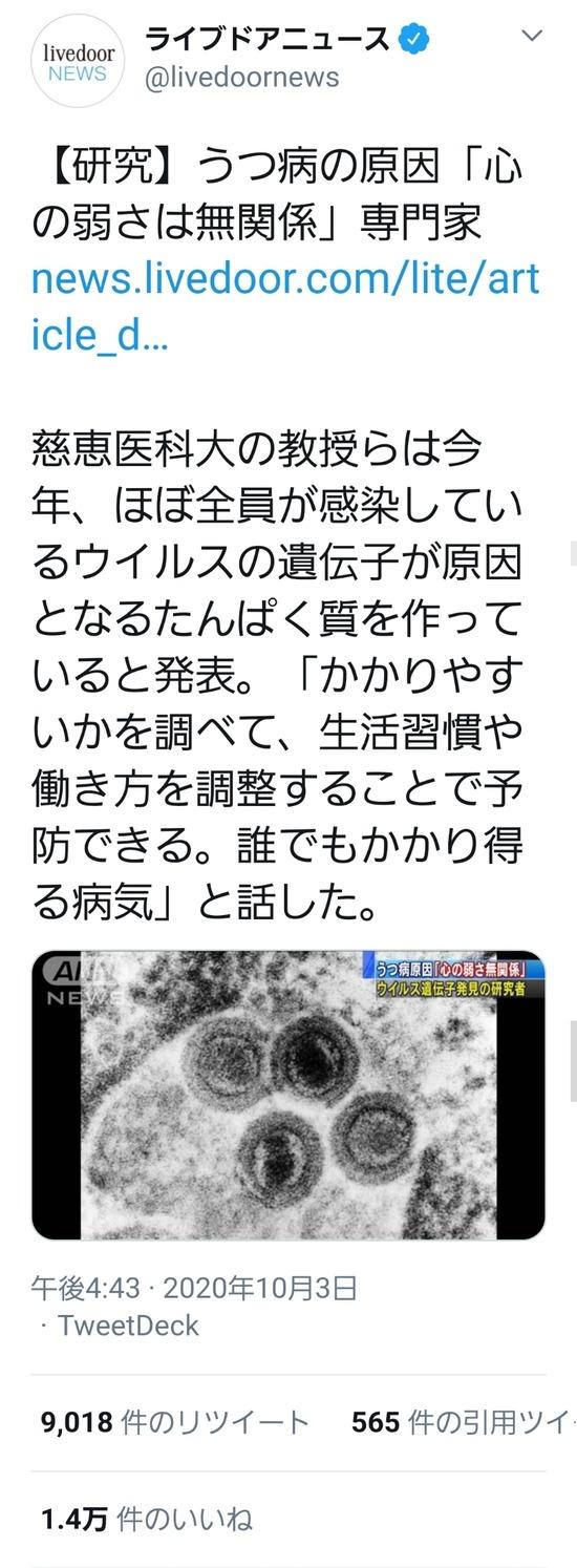 この研究、少し前から注目されてて鬱病は脳に侵入したウイルスが作用してるのではないかと言われていた