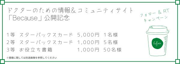 株式会社トライブホールディングス が運営する医師向け情報&コミュニティサイトBecauseではサイト公開を記念してTwitterキャンペーンを開始いたしました。