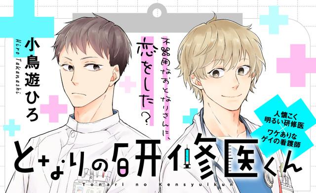 「となりの研修医くん」は、人懐こく明るい研修医・深山とワケあり気味なゲイの看護師・蓮を描くBL作品。4年務めた大学病院を辞め、都心から少し離れた寮付きの総合病院にやって来た蓮は、引っ越してきて早々に隣の部屋に住む深山に懐かれてしまう。初めは距離感の近い深山に困惑していた蓮だが、一緒に仕事をする中で何事にも一生懸命な彼を見るうちに好感を抱くようになる。