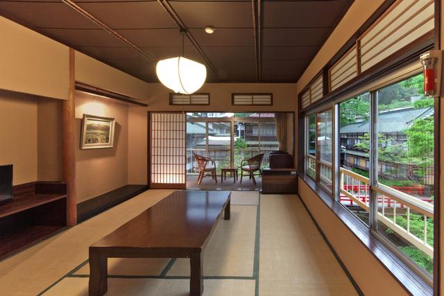 食事もそれぞれ違っており、料金や目的に応じて宿泊先を選べる。故中曽根康弘元首相がよく訪れていた宿としても知られており、本館の趣のある建物と目の前の赤い橋は、数々の映画のロケ地となった。