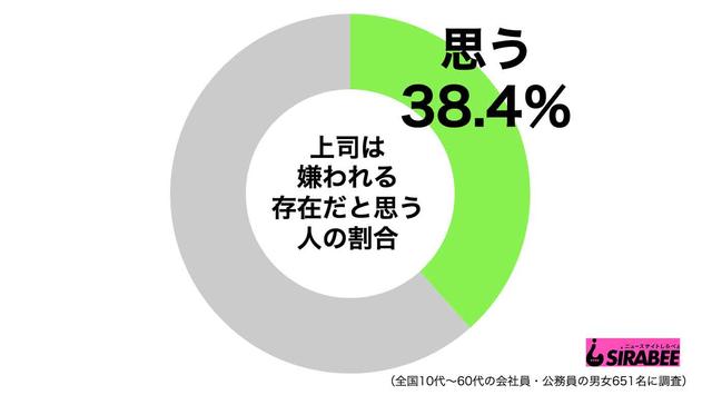 「上司は嫌われる存在だと思う」と答えた人は、全体で38.4%だった。