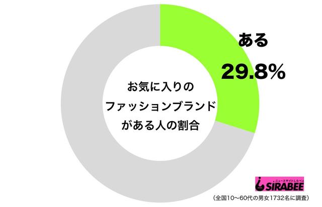 しらべぇ編集部が全国10~60代の男女1,732名を対象に調査を実施したところ、全体の29.8%が「お気に入りのファッションブランドがある」と回答した。