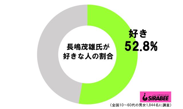 結果、「好き」と答えた人は52.8%。現在も半数以上が長嶋氏に好感を持っている。