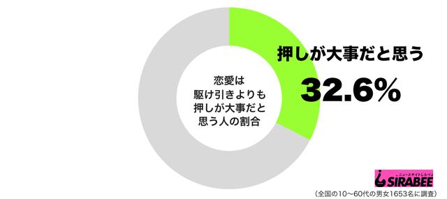 結果は、「押しが大事だと思う」と回答した人が32.6%となった。多くの人は恋愛の駆け引きは大事だと考えているようだ。