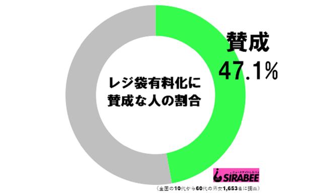 全人類が考えなくてはならない、プラスチックゴミ問題。ちなみに、しらべぇ編集部が以前全国の10代~60代の男女1,653名を対象に「レジ袋の有料化」について意識調査を実施したところ、「賛成」と回答した人は全体で5割弱という結果に。