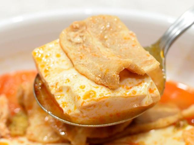 わりとまろやかな辛旨スープとたっぷり豆腐&豚肉。ごはんと合わせたい一品です。軽い酸味もあって重すぎず、意外と口当たりよくて食べやすいんですよね。カラダあたたまる食をお求めの際はぜひ。