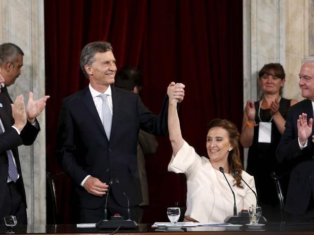 彼と副大統領のGabriela Michettiが宣誓を受けた。 「私、Mauricio Macriは、神、私たちの主、そして聖なる福音書によって、忠誠と誠実さをもって大統領の任期を尽くし、忠実にアルゼンチン国家憲法を守り、守るよう誓います。母国は私を訴える "とマクリは言った。