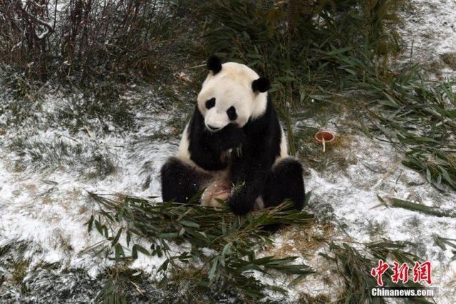 青海省西寧市では11月30日、雪が降った後に気温がマイナス約4度まで下がったが、パンダは高原の寒さなど何ともない様子で、屋外で元気にエサを食べ、「もぐもぐモード」全開だった。中国新聞網が伝えた。