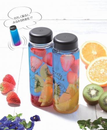 さらに!ボトルをやさしく振ると、フルーツの酸の効果で鮮やかなブルーがキレイな紫に変化♡