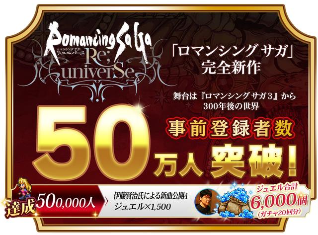ロマンシングサガリユニバースの事前登録者数が50万人を突破!