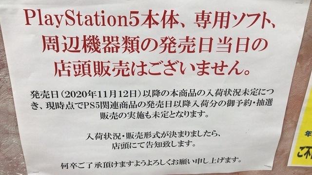 PS5関連商品の発売日以降入荷分の予約、抽選販売の実施も未定とあるよ