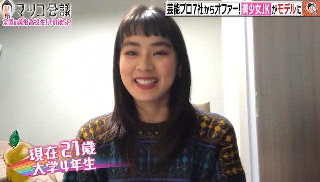 将来の夢を聞かれると、「美容に興味があるのでコスメ販売とか美容部員をしたいと思ってて就職活動も第一志望でしています」と回答。芸能界に進む可能性は「ないかなと思います」と一貫していて、「行くなら本当に命がけで行かないといけないところなのかなと思っているので」と芸能事務所のオファーを断っている理由を明かした。