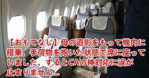 母の遺影をもって機内に搭乗。手荷物を抱いた状態で席に座っていました。するとCAの神対応に涙が止まりません….