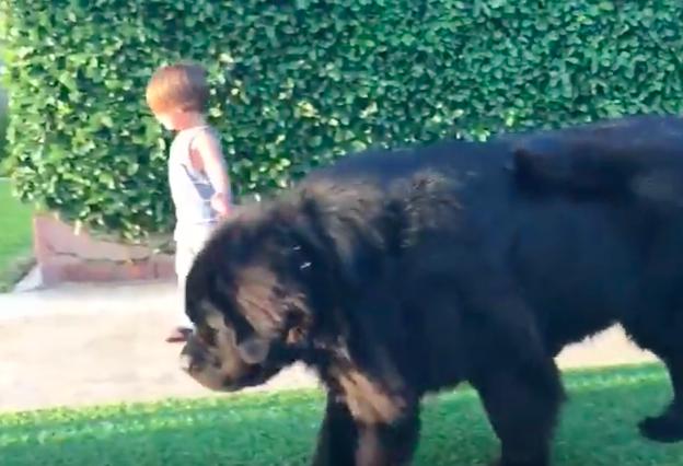 まるでクマのような巨体を持つこのワンちゃんはニューファンドランド犬という犬種。体重は80kg超えと成人男性をゆうに上回る。