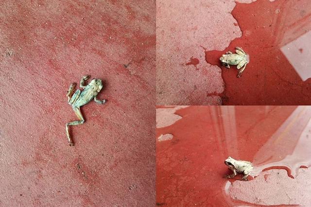 Este sapo pode até não ter virado um príncipe ao ser beijado, mas fez uma coisa ainda mais impressionante: ele voltou à vida depois de receber um balde de água na cabeça. O simpático sapinho foi encontrado ressecado e com cara de morto ou, no mínimo, prestes a bater as botas. Ao ser molhado, voltou a ter aparência saudável.