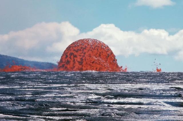 Você não quer estar muito perto dessa bolha de lava quando ela estourar. A boa notícia é que essa foto é antiga, de 1969, e ninguém se feriu. O curioso sobre a imagem é que o que parece ser água do mar na parte da frente da foto é na verdade rocha vulcânica sólida.